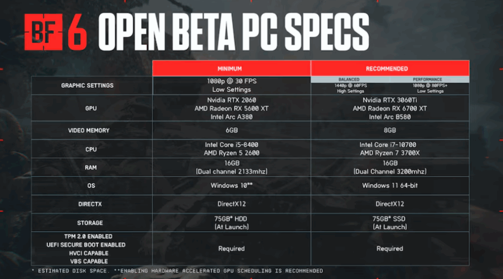 Requisitos de sistema para PC – Battlefield 6 Beta