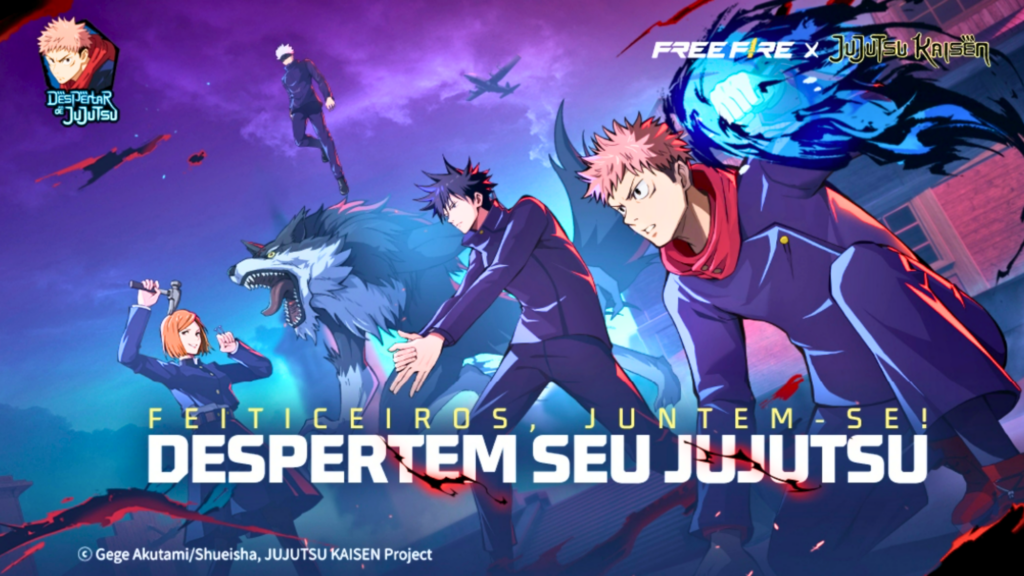 Crossover oficial: Free Fire recebe personagens e mecânicas de Jujutsu Kaisen.