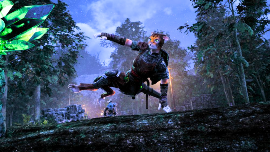 Destaque: Protagonistas são guerreiros felinos customizáveis com habilidades de parkour e furtividade.